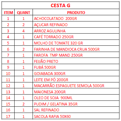 Cesta Básica - G (17 Itens)